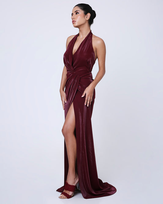 • Bordeaux Cowl Dress