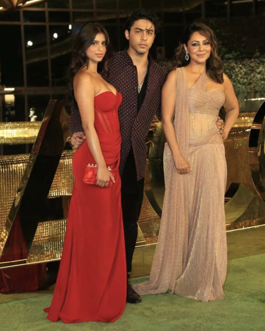 Suhana radiates new-gen style at the grand opening of the Nita Mukesh Ambani Cultural Centre in our bold yet graceful statement Corset Dress.