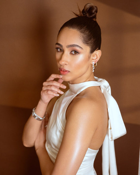 Spotted: Mira Rajput Kapoor, minimal and chic in our custom-made pure white draped jumpsuit, designed exclusively for her appearance at the Grazia Beauty Awards to promote her new skincare line, Akind.