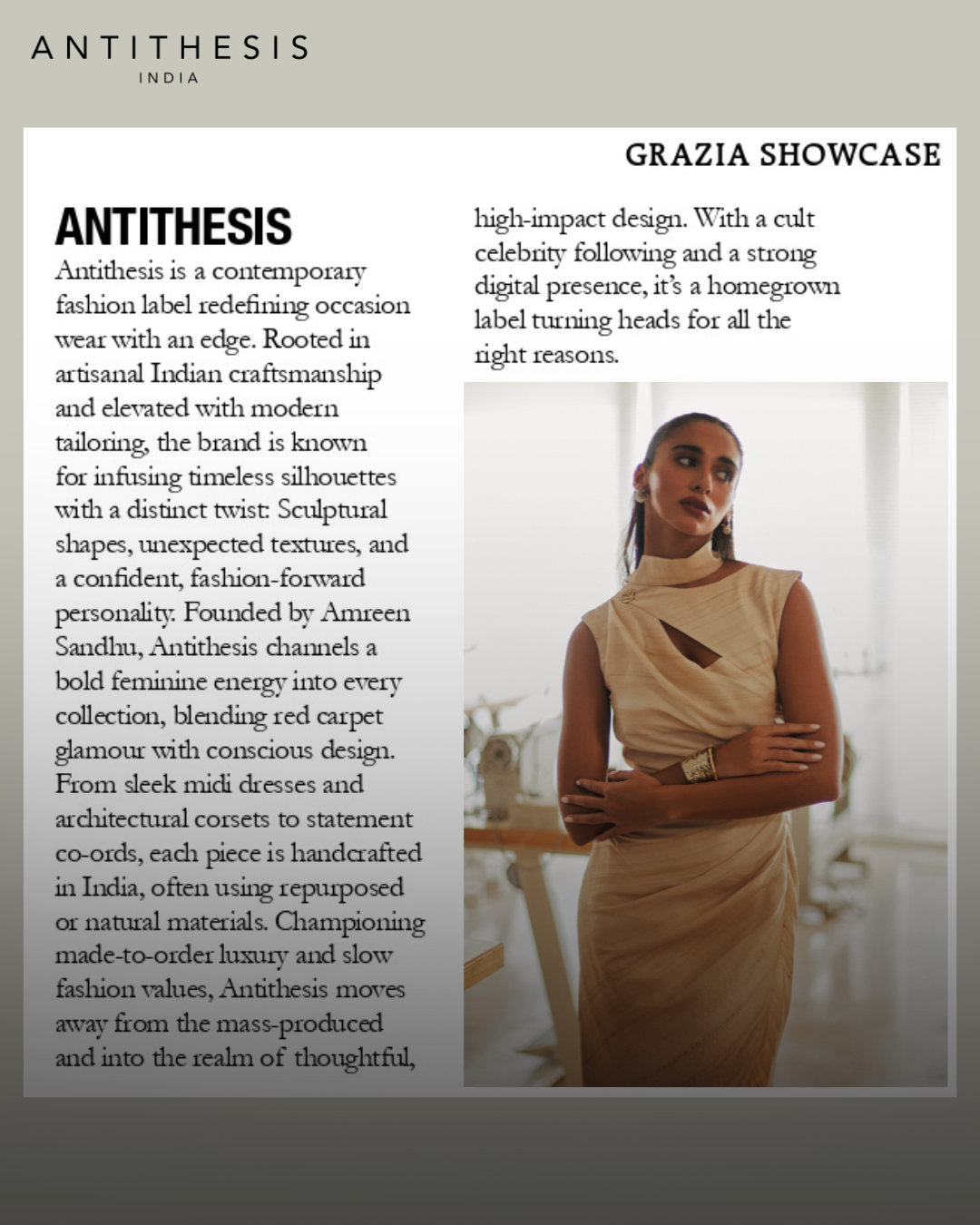 Exuding radiant elegance, Suhana Khan stuns in Antithesis’ Isla Sol Set—a seamless fusion of modern artistry and timeless sophistication. Captured beautifully by the brilliant Sasha Jairam and featured by Vogue India.