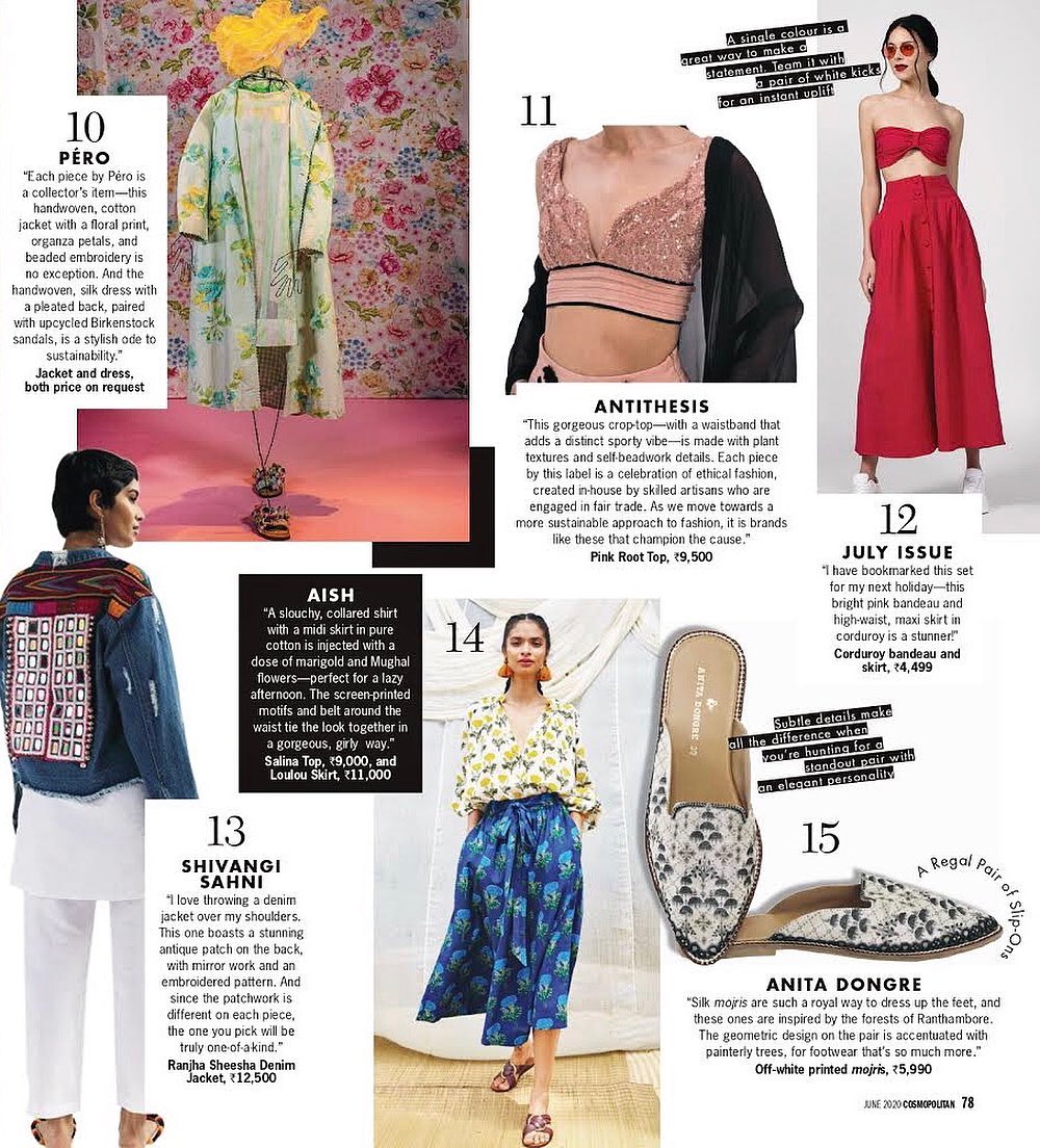 “Each piece by this label is a celebration of ethical fashion, created in-house by skilled artisans who are engaged in fair trade. As we move towards a more sustainable approach to fashion, it is brands like these that champion the cause.”