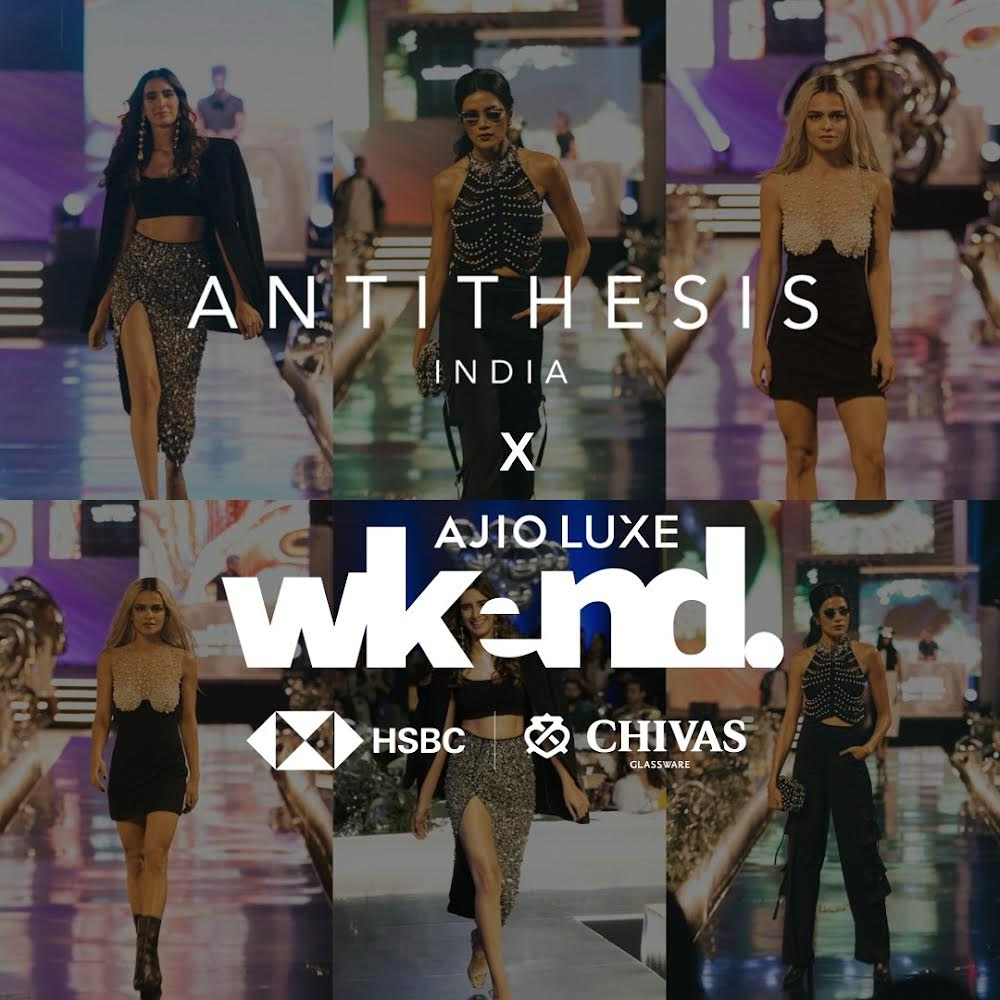 Antithesis brings a modern twist to Bridal Asia, showcasing cocktail gowns in a monochrome palette, embracing the fusion of contemporary elegance and the traditional charm of timeless jewels.