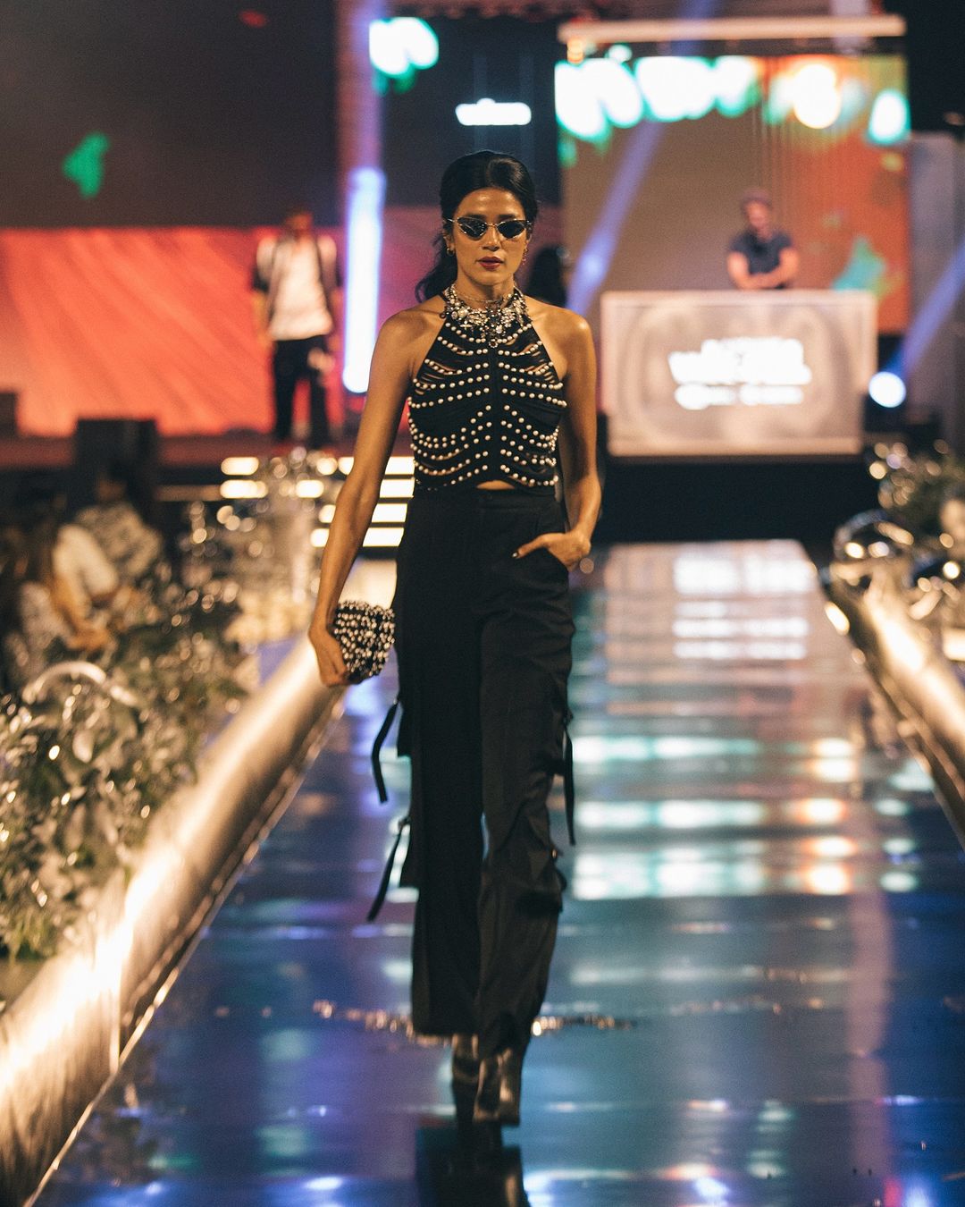 Florals with an edge! Pooja wears our Ivy Top and Gilly Pants from the Nuance collection, showcasing statement handcrafted details and a unique blend of offbeat, sport-inspired elements.
