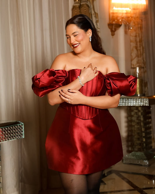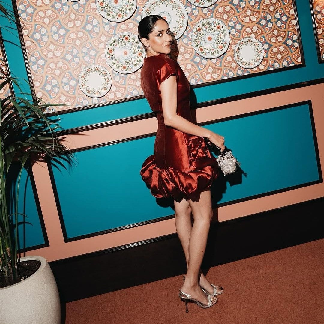 Malaika graces the Chivas party at Ajio Luxe Weekend wearing our best seller statement piece, the Bordeaux Vegan Leather Dress.